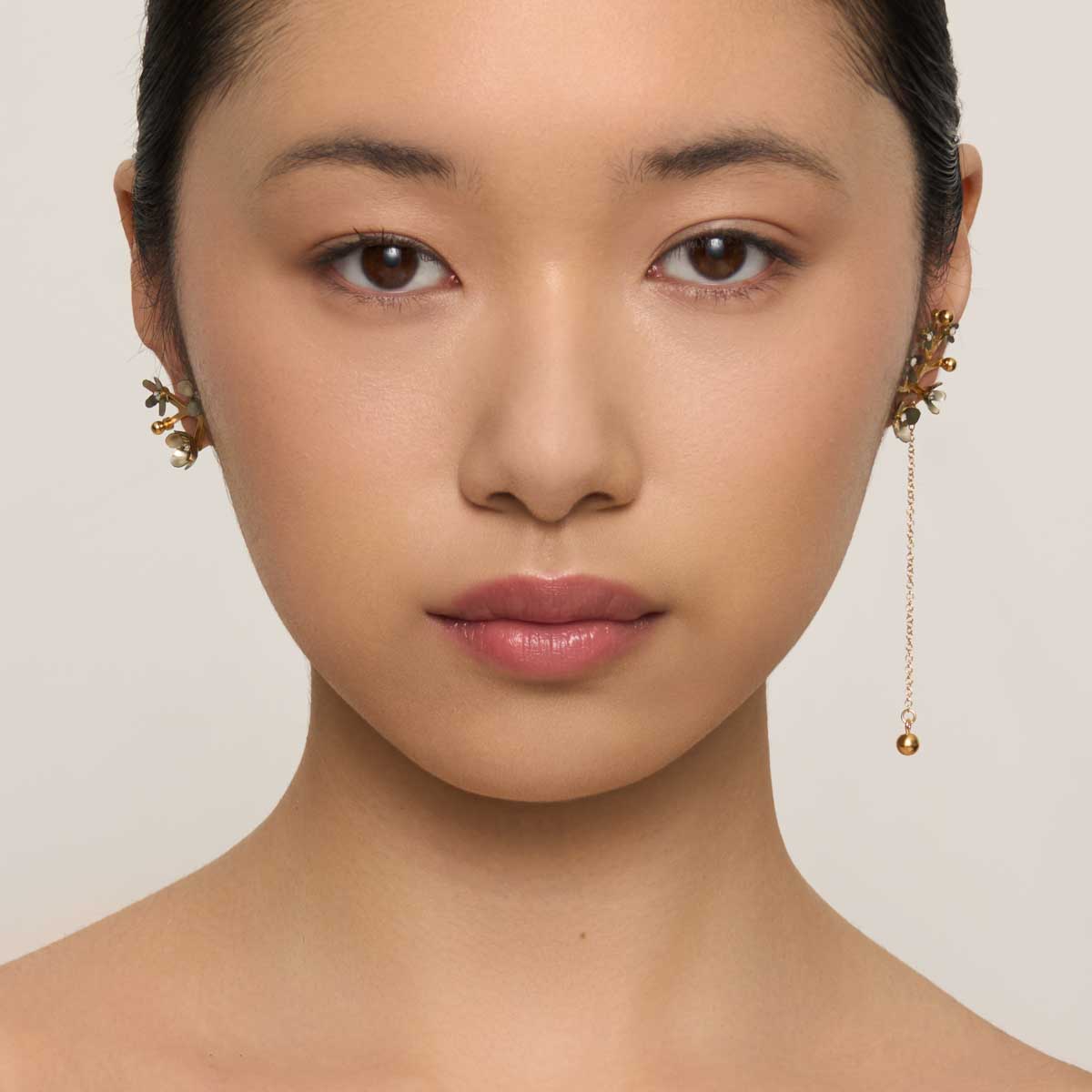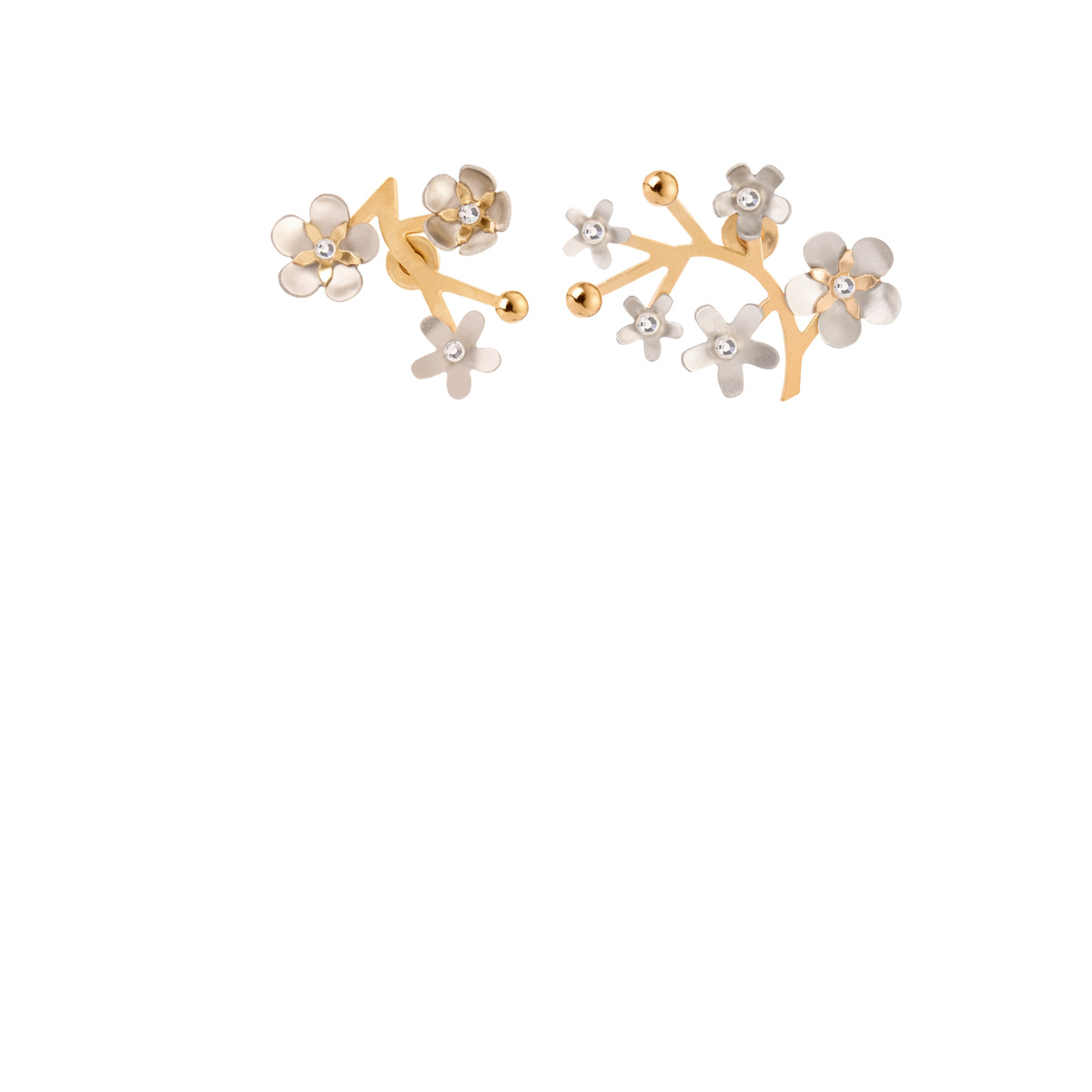 Asymmetrical earrings with light cherry blossom flowers from the Plantis collection