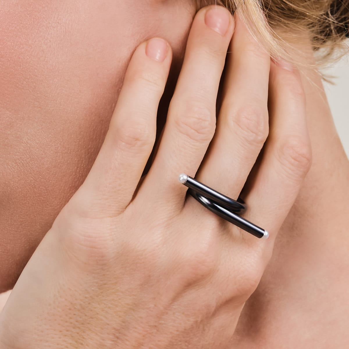 Anna Orska makes jewellery that combines modern design with unique handcraft technique. In Vietnam collection, the designer juxtaposed natural coincidence with a minimalistic form. The artistic ring was carefully handcrafted from silver. The unique composition of two irregular freshwater pearls and a simple modern band will be a perfect accessory for those who love unobvious solutions and long for exceptional aesthetic experiences.
