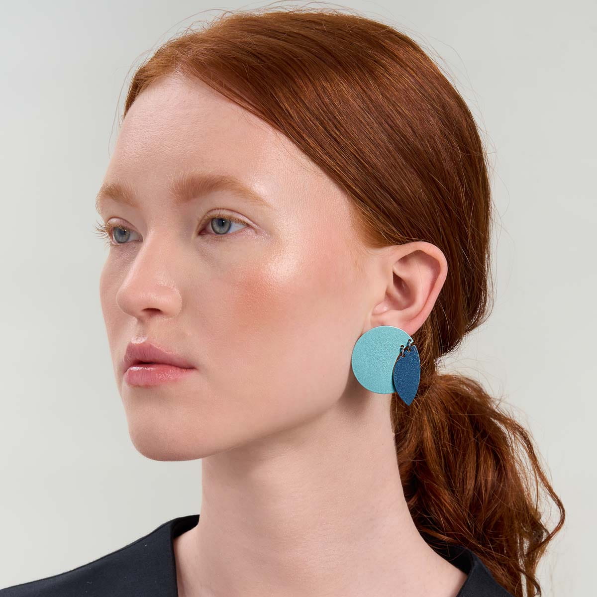 Artistic jewelry will be a great addition to minimalist clothes. Statement earrings are best combined with a bracelet or ring, so as not to accumulate ornaments in the neck area. Blue earrings will go well with colorful brooches and pins from the Plantis collection or uncut diamonds from the Verum collection. The vegan handbag from the Vivo collection will also be a perfect complement to the earrings. Don't be afraid of bold combinations and mixing colors! For more jewelry styling tips and inspiration, check out our blog.