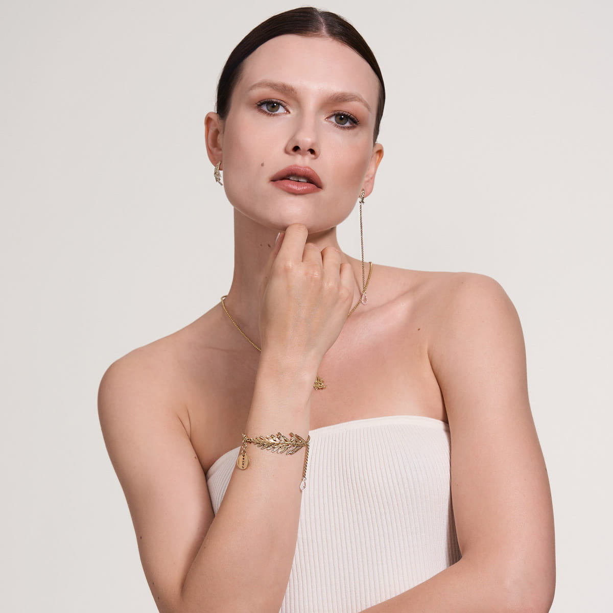 The daily close presence of northern white cedar and its non-obvious perfection inspired Anna Orska to create Thuja collection. Thanks to its subtle design the jewellery from Thuja collection discreetly adorns the body emphasizing its natural beauty. The delicate asymmetrical thuja twigs, handcrafted from golden or oxidized brass, add artistic character to the chain. Additionally, the design was adorned with crystal shaped like a drop of morning dew. Feminine jewellery in a romantic style will be a perfect choice for people who love nature and constantly draw strength and joy from it.