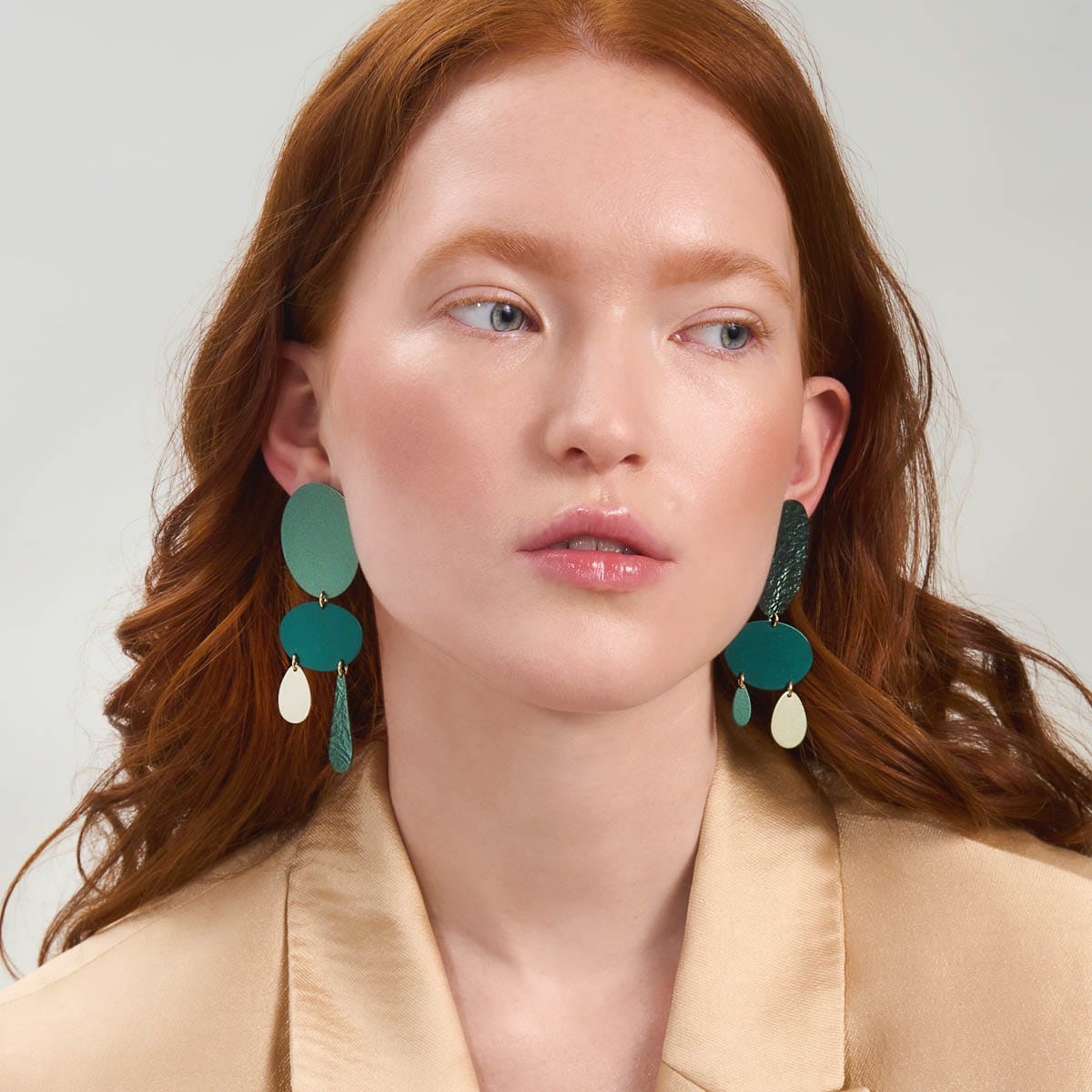 The color green is associated with lush vegetation, so it symbolizes growth, rebirth and hope. It is also a color that helps achieve calmness and creativity. Artistic, asymmetrical earrings will emphasize the character and fantasy of the person who wears them. Magnificent earrings look the most striking when paired with brooches, bracelets or rings, instead of necklaces. We recommend combining them with designs from the Moon collection in gold color, which are distinguished by their irregular, wavy structure. Original earrings inspired by abstract paintings are also a great gift idea for art enthusiasts.