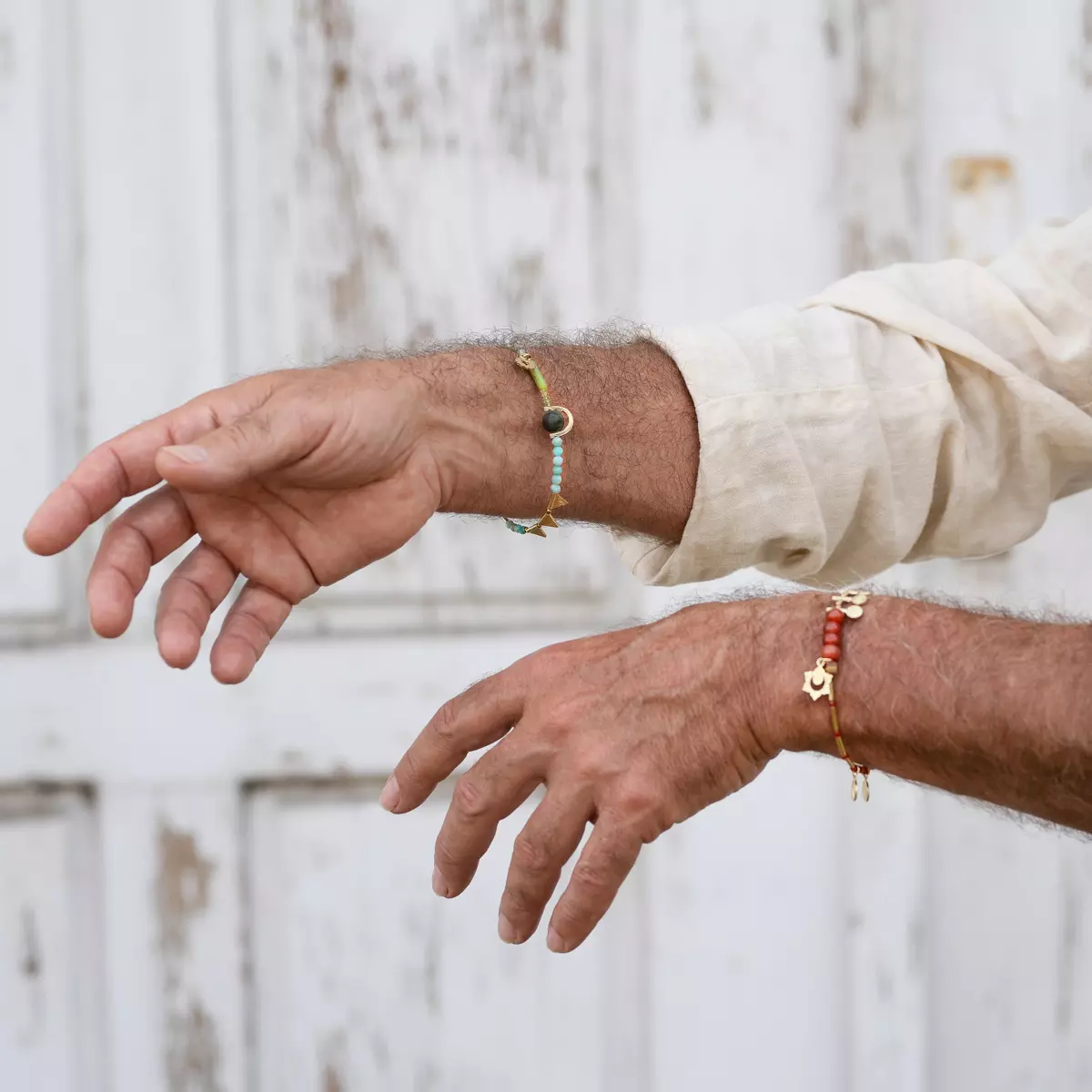 Inspired by the awakening of summer and holiday joy, the artistic jewelry from the Gelato collection is full of energetic colors carefully chosen by Anna Orska. The Polish designer drew on exotic inspirations from energy centers and interpreted good vibes in jewelry with a touch of boho. The delicate bracelet was created by combining colorful minerals such as carnelian, agate, and tiger’s eye with geometric charms. Additionally, the bracelet is adorned with two small pendants inspired by the sacral chakra. This chakra is called the “joyful chakra” because its energy fosters optimism and a zest for life. Emotionally, it governs self-esteem, happiness, and confidence in one’s own abilities.