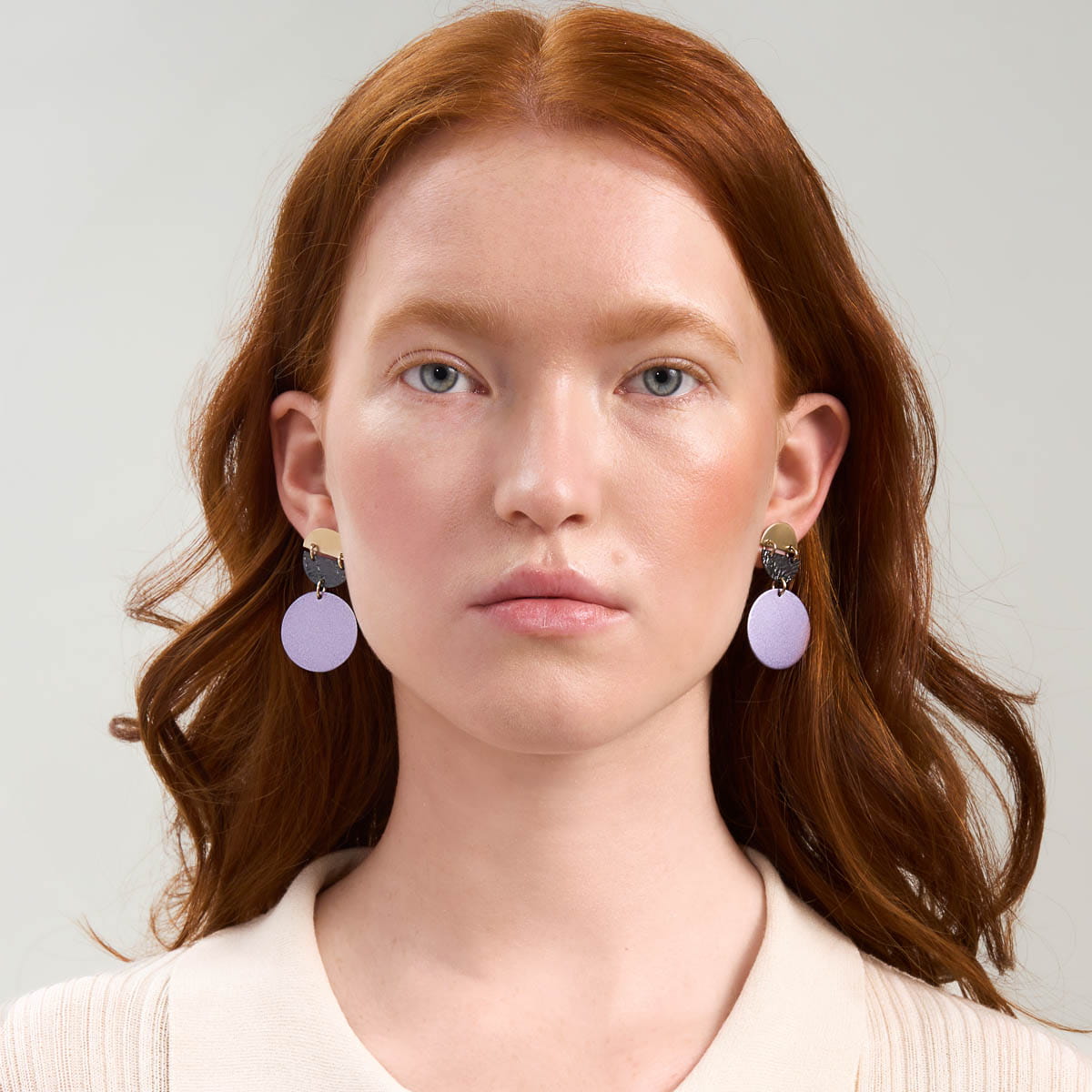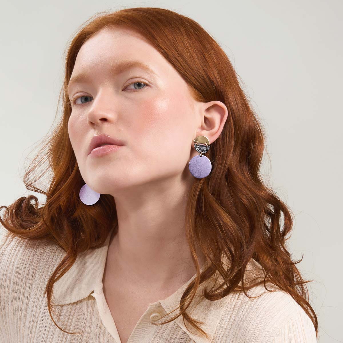 Large earrings like the company of striking bracelets and rings. Colorful earrings from the Tache collection will create an energetic set with bracelets of colorful natural stones from the Gelato collection. They will also go well with monochromatic gold designs. The structured surface of the earrings will match the designs from the Moon collection - choose a wide bracelet or a large ring. Maximalist jewelry will attract attention and win compliments! Gold-gray-purple earrings from the Tache collection, due to the contrasting color composition, can be worn with both gold and silver jewelry.