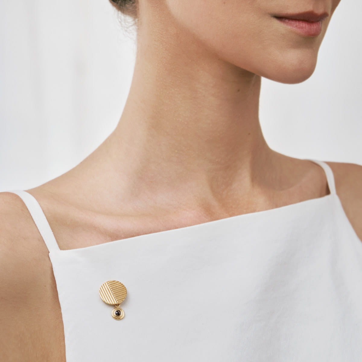 Gold-plated pin with gray crystal from the Holos collection