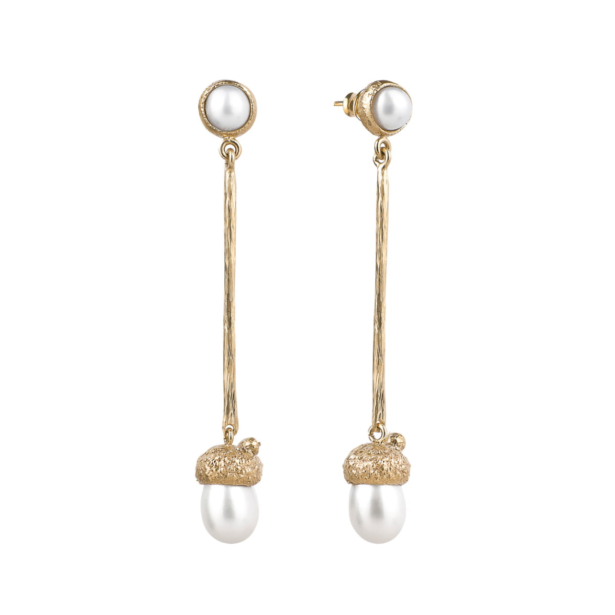 Long gold-plated acorn earrings with pearls