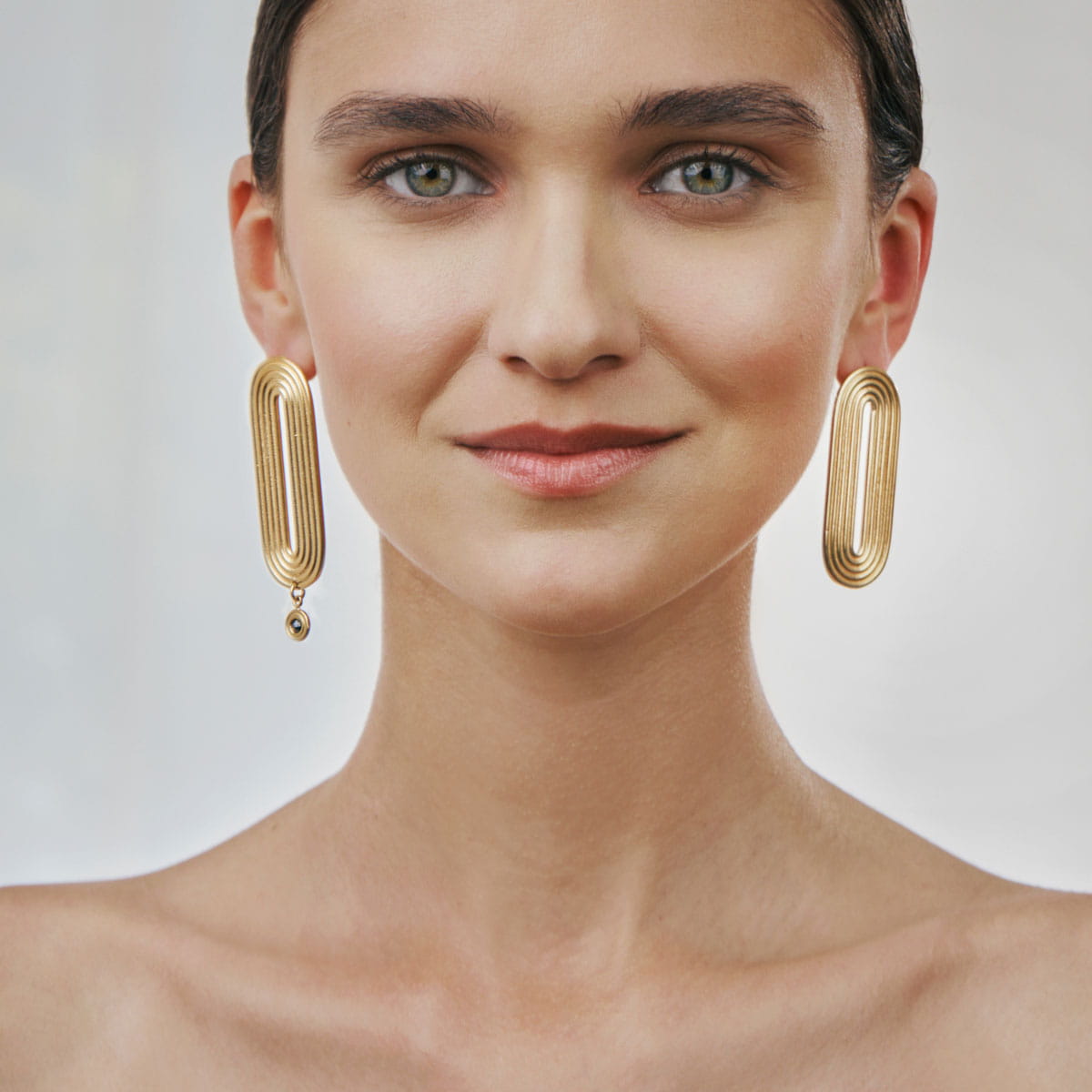 Life begins and ends with a breath. In some places it is believed that the soul enters a person with the first breath. In nature, air accompanies us in the form of wind. It is a symbol of creativity and attentiveness. At the ORSKA atelier, we translated the power of the element of air into elegant earrings, which were handcrafted from brass and then plated in gold. The oval shape mimics the dynamics of constantly flowing air. The composition was completed with an asymmetrical crystal in hematite gray. Earrings inspired by the element of air are a proposal for modern people who are looking for timeless solutions. Earrings from the Holos collection will also work well as a gift for loved ones.