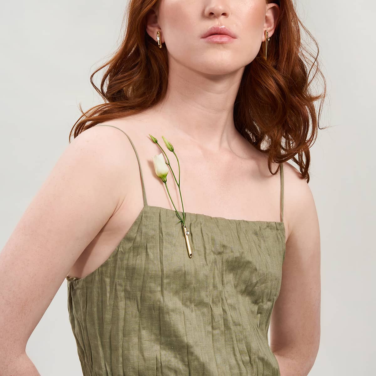 Ozdobiony błyszczącym kryształem pin może pełnić funkcję mosiężnego kwietnika, który dopełni Twoją stylizację. Ręcznie robiona, geometryczna przypinka bez trudu pomieści gałązki i kwiaty, dzięki którym piękno kolorowych kompozycji możesz mieć zawsze przy sobie. Naturalna biżuteria stworzona z wielobarwnych żywych i suszonych kwiatów to dodatek jednoczenie wyjątkowy i uniwersalny - sprawdzi się o każdej porze roku, jako uzupełnienie damskich i męskich kreacji.