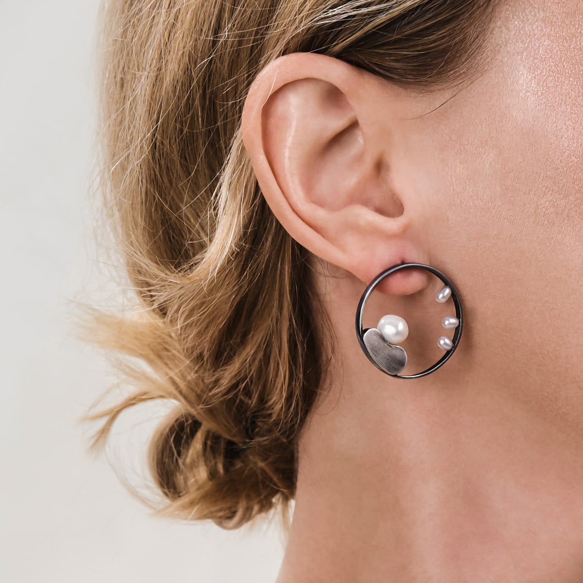 Round earrings with pearls from the Parer collection