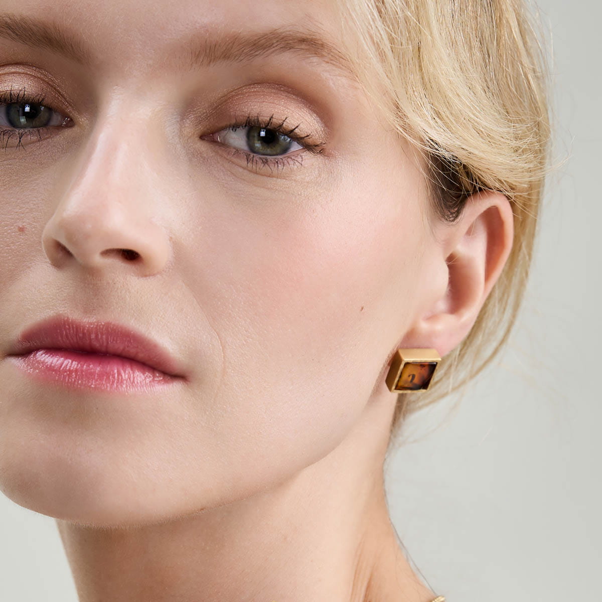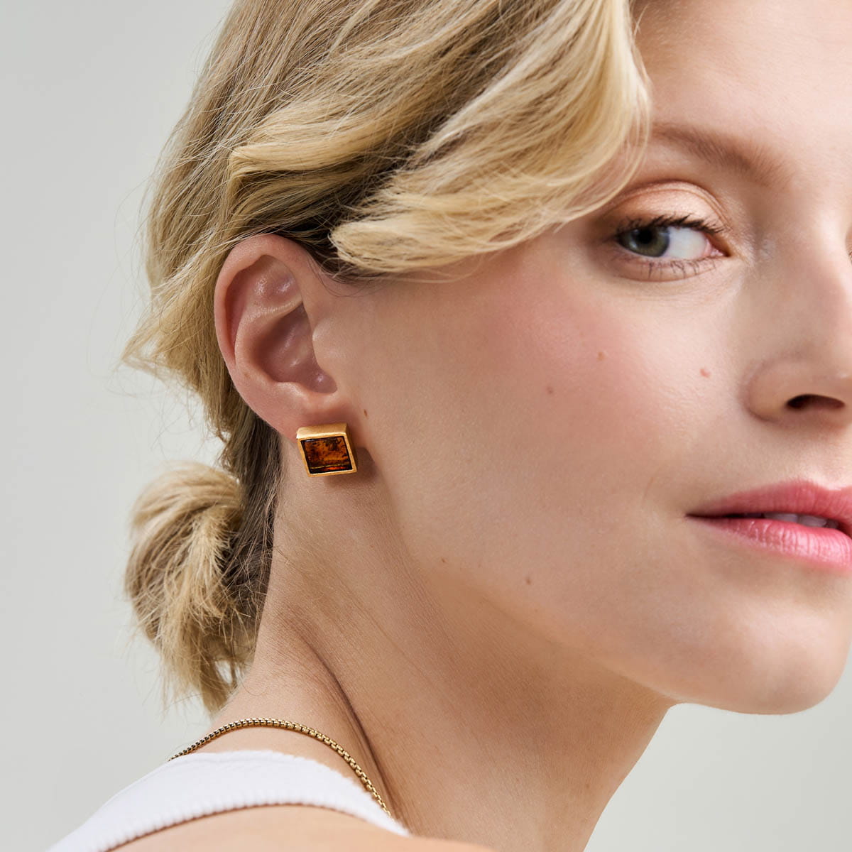 Subtle square post earrings with amber