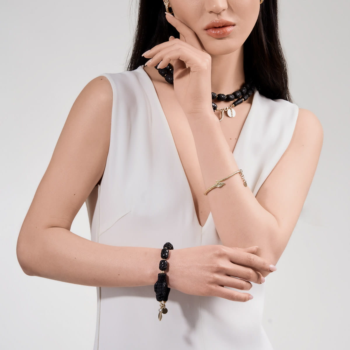 The latest jewelry collection is the result of a journey that takes us back not only to a place, but more importantly to a traditional craft and the people behind it. Kembali, from the Indonesian language, means return. The collection was designed in Bali and, in the case of the carved pieces, also made by local masters. In creating the concept for the Kembali jewelry collection, Anna Orska reached for important local symbols inspired by the island's flora and fauna. Thus, the collection features flowers of hibiscus, lotus, chrysanthemums and roses, as well as scarabs and snakes.